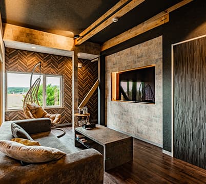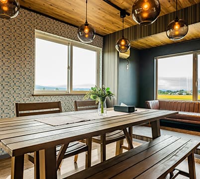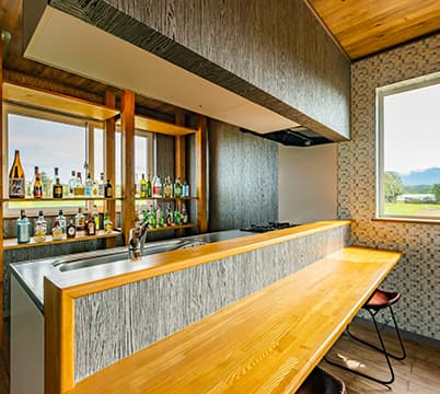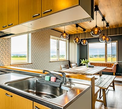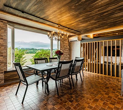上富良野町の日常に溶け込むこの別荘に足を踏み入れれば、木のぬくもりと、シャンデリアの明かりが灯る非日常が演出された空間が広がり、旅の高揚感をより引き立てます。長期間の滞在でも常に彩りを与え続ける内装は、他の物件と一線を画します。